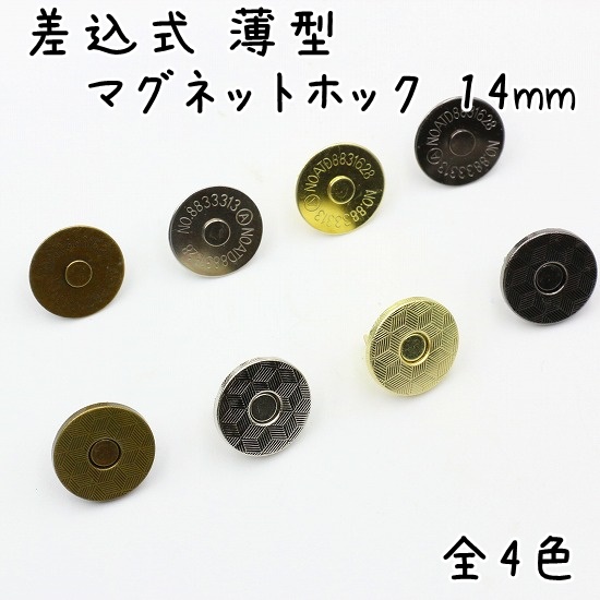 差込式 マグネットホック 14mm 10組セット 薄型 全5色 マグネットボタン パーツ 金具 レザークラフト 留め具 差し込み ゴールド シルバー ブラック