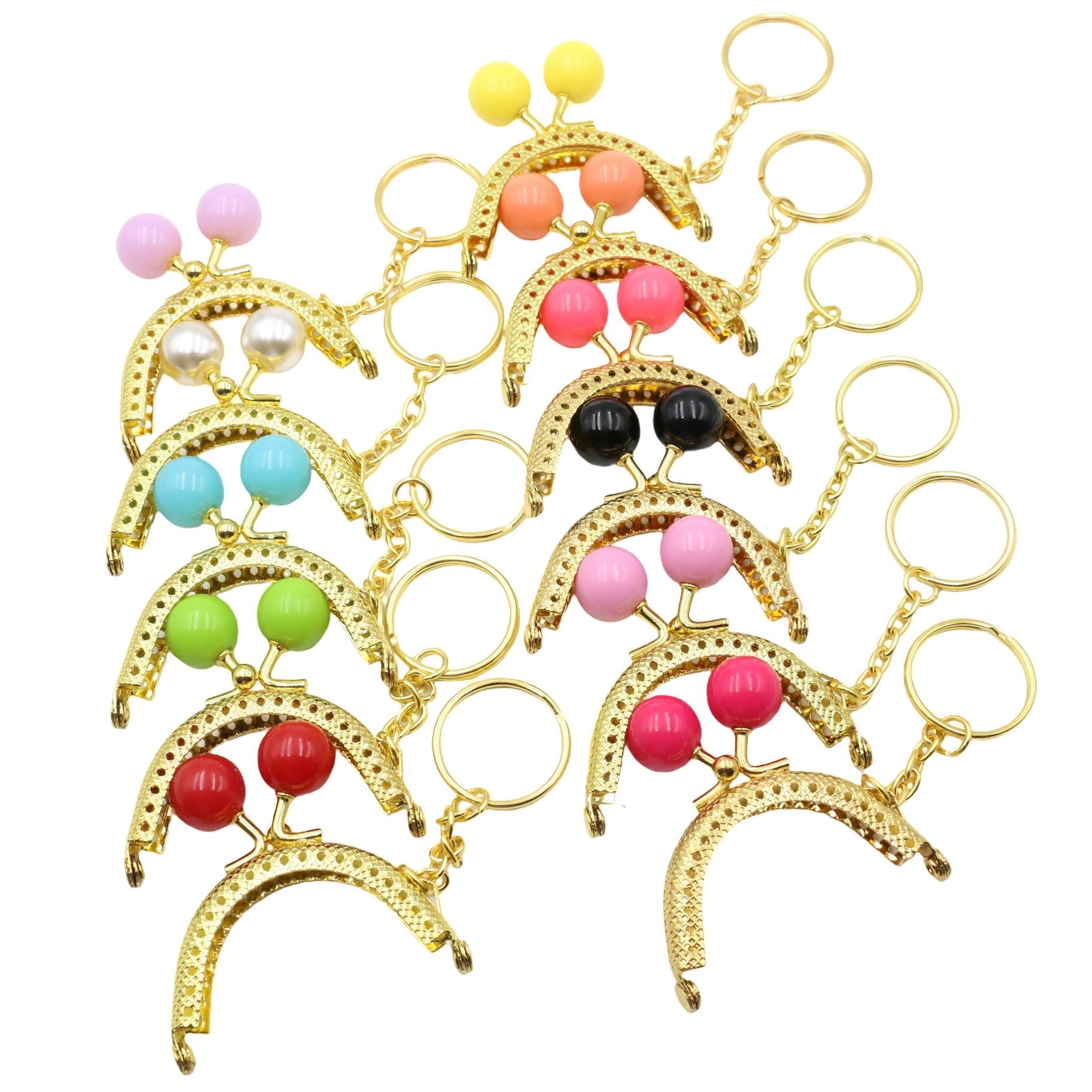 [3個] がま口 口金 ミニ 5cm 縫い付け キーリング付き 5 センチ 金具 パーツ 丸型 あめ玉 ミニ口金 ミニがま口 ゴールド 金 専門 財布 小銭入れ オススメ 11色