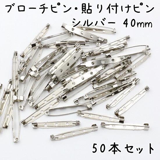 [50個] ブローチピン 40mm シルバー ハンドメイド 手芸 金具 アクセサリー 安全ピン パーツ ブローチ ピン コサージュ 卸 オススメ まとめ買い セット