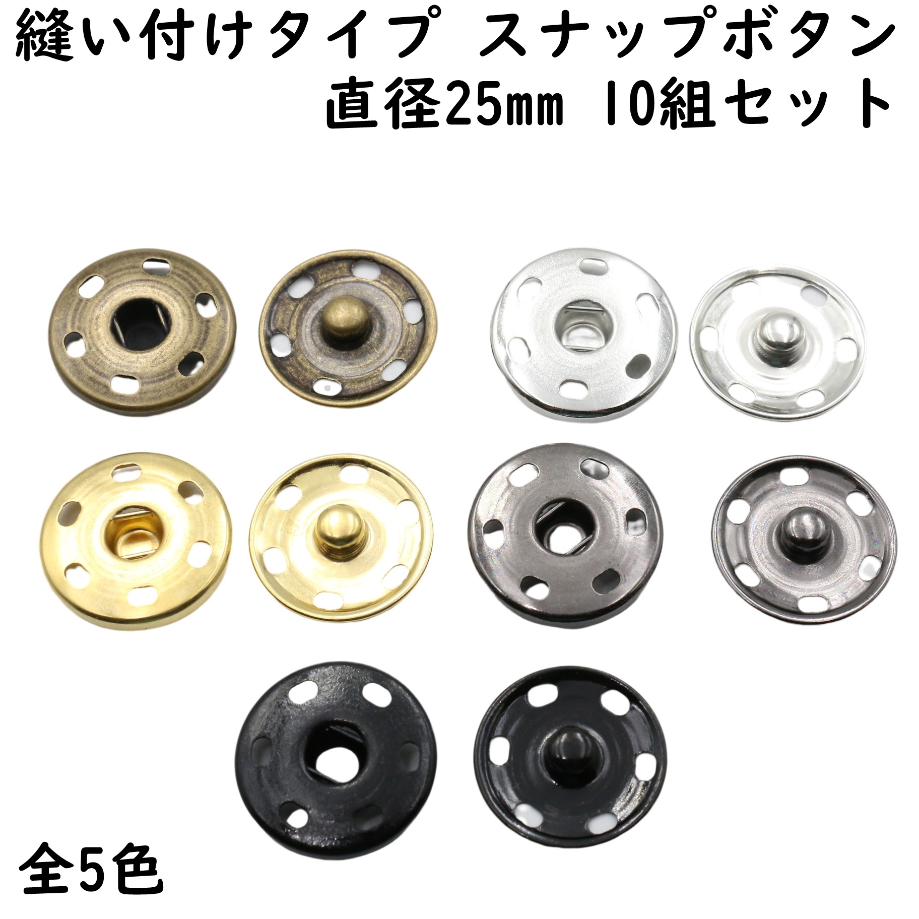 [10組] スナップ ボタン 25mm 縫い付け 全5色 スナップボタン 手芸 修理 種類 ハンドメイド リングスナップ ホック アメリカンスナップ 小さめ 大きめ 金具