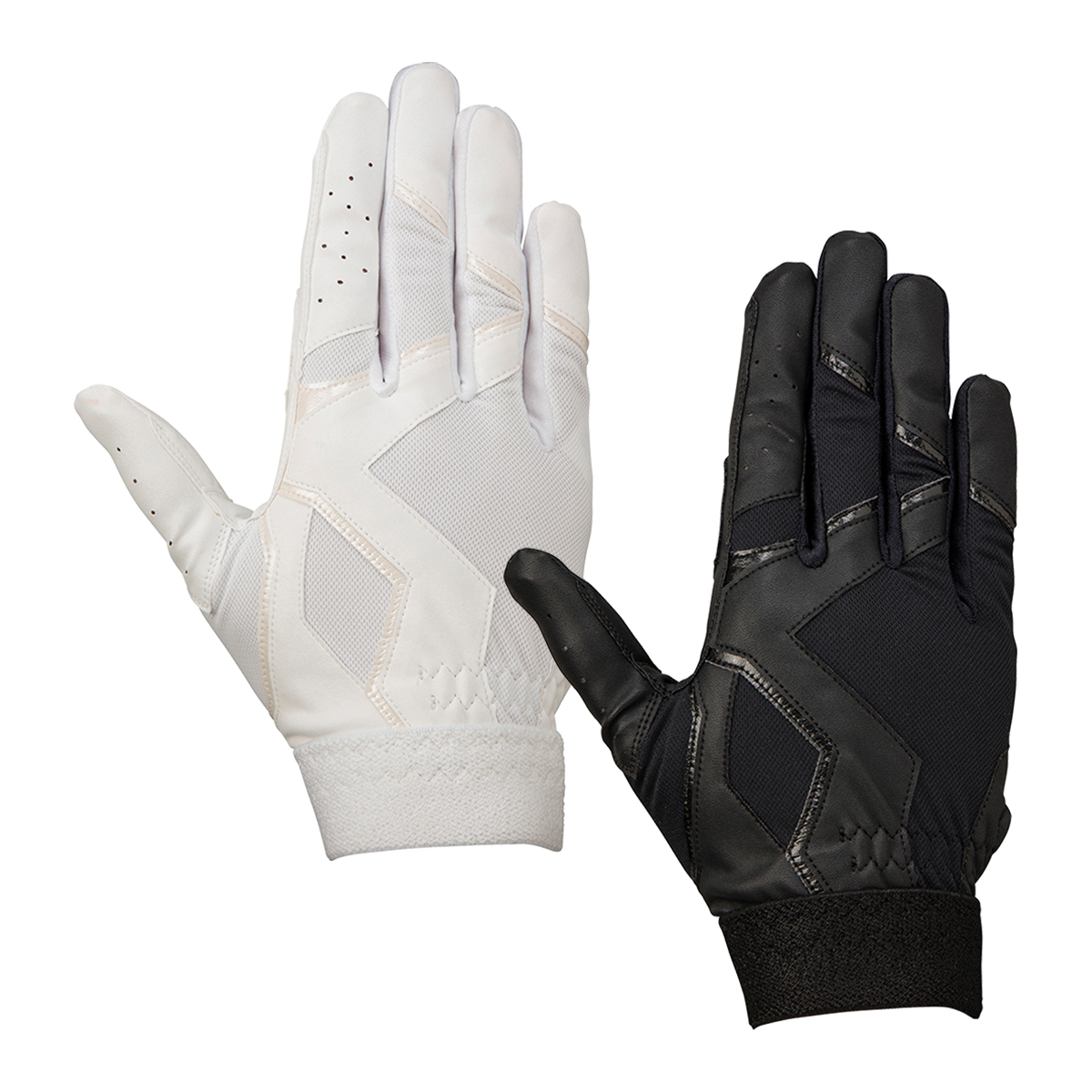 王道の守備手袋。衝撃緩和効果の高い専用パッドを配置。また、捕球時に重要とされる小指、薬指、中指にグリップ性の高い素材を使用。更に汗のこもりやすい手のひら中央部にメッシュ素材を用いていつでも快適。