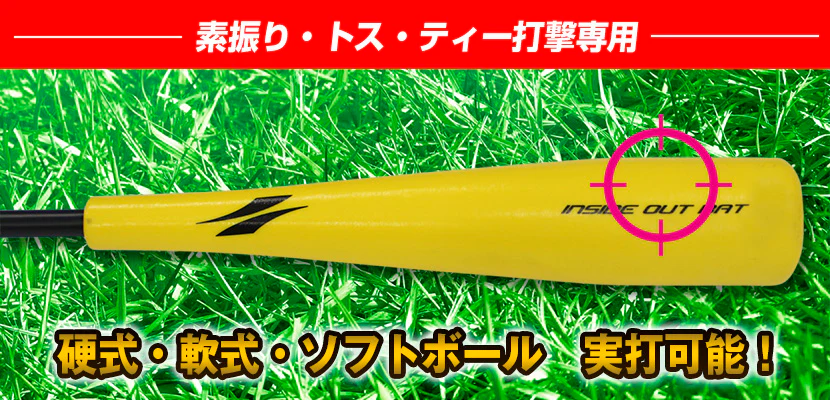 ■硬式・軟式・ソフトボール実打可能(※バット中心の黒い部分では打たないでください)