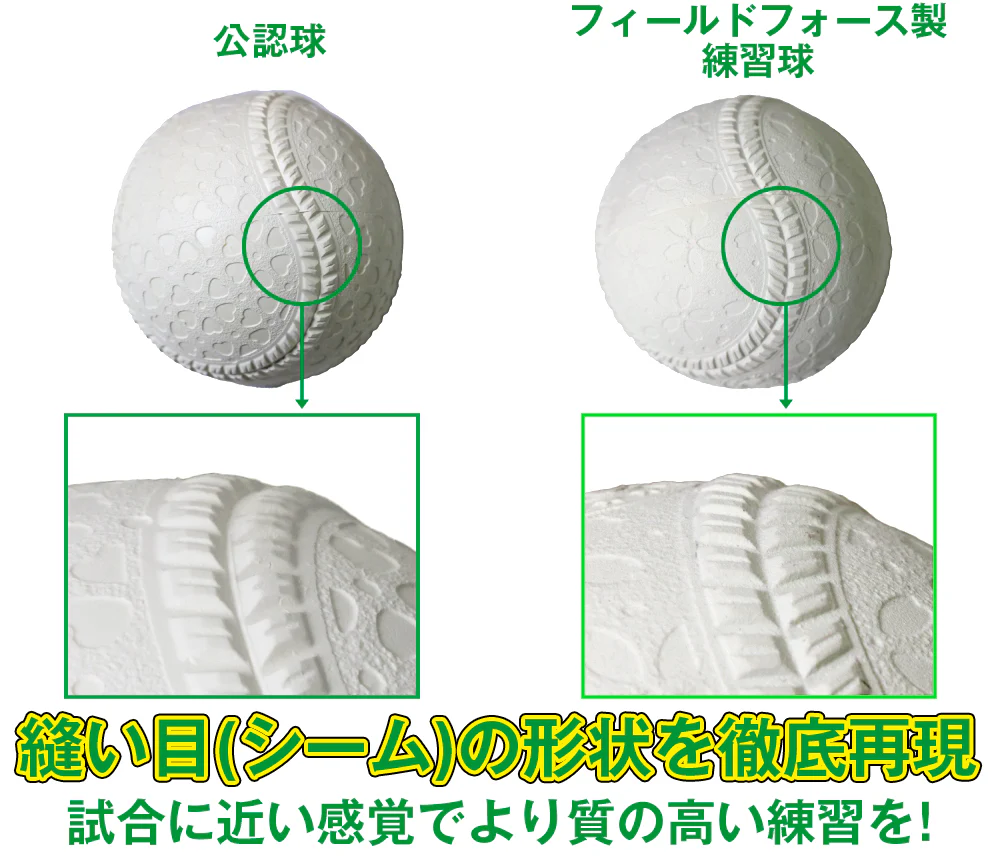 試合球の縫い目の高さ、角度、形状を徹底的に研究し試合球に近い練習球を実現!