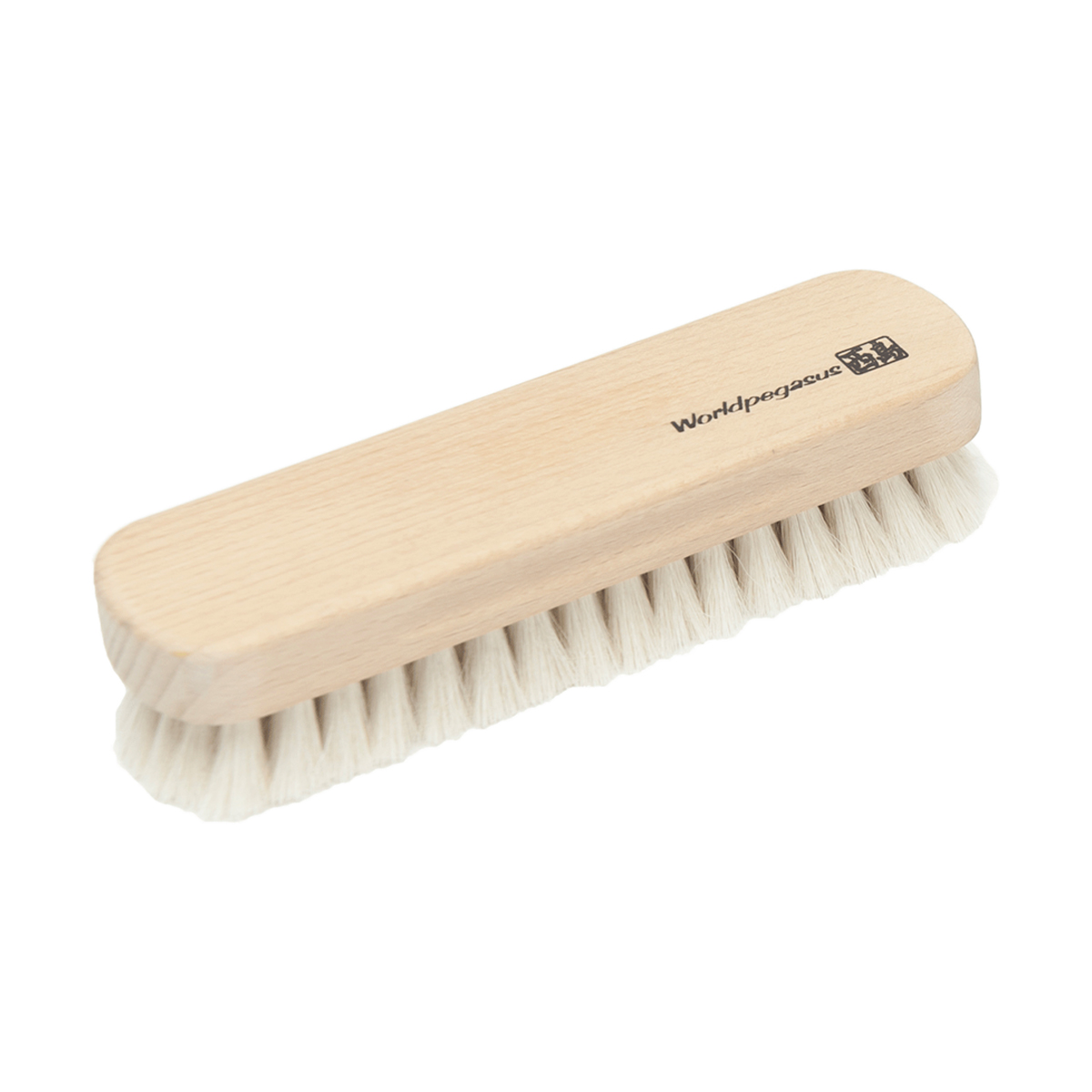 高級紳士靴のメンテナンスでよく使用されるヤギ毛ブラシを採用。馬毛よりさらに柔らかく馬毛ブラシでは届かない部分の汚れも落とせます。
