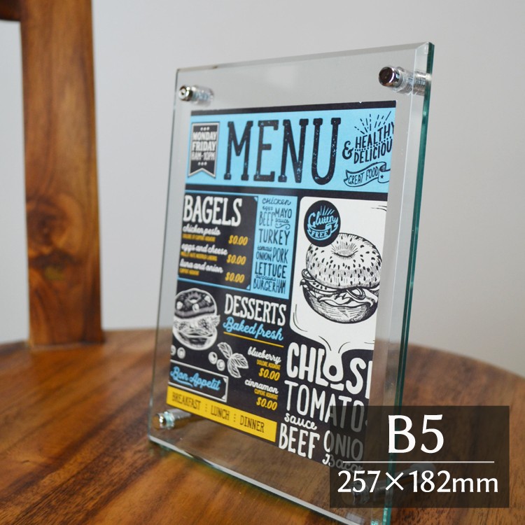 MENU、写真、POPなどの展示にも高級感がありながらガラスと違ってアクリルであることが人気です。
