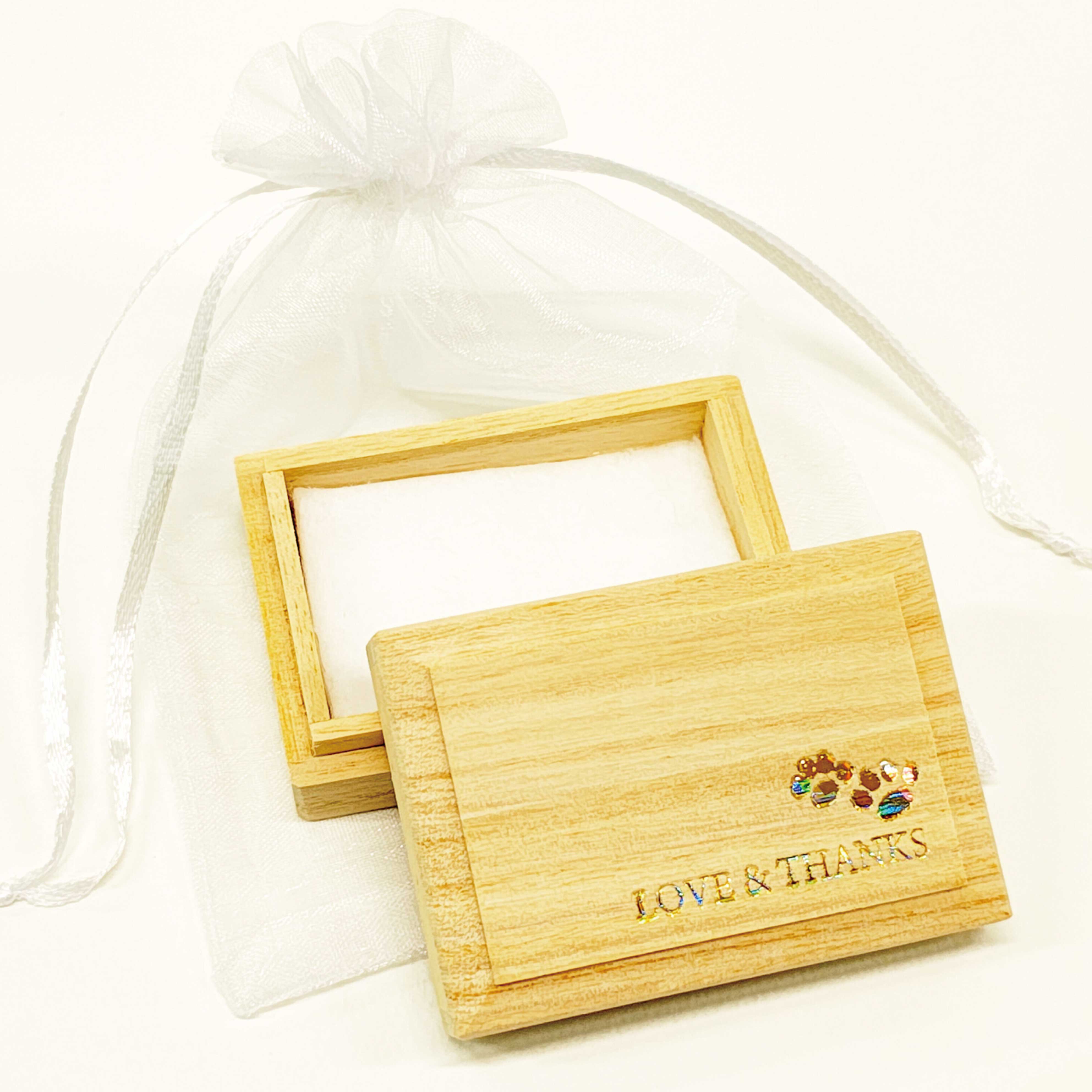 ペット用 手元供養 桐箱小箱 肉球角型「LOVE &THANKS 」プリズムゴールド箔押し肉球のデザイン 日本製 (付属品付き)簡易ラッピング済み!