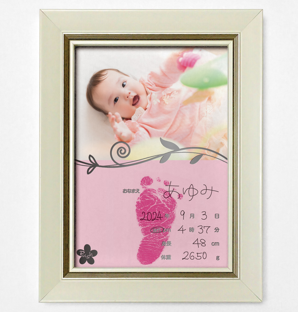 ボイスフォトスタンド 汚れないインク足型キット付き 0-6月赤ちゃん対応 産声ボイスメッセージカード付【30秒録音】 フレーム プレゼント