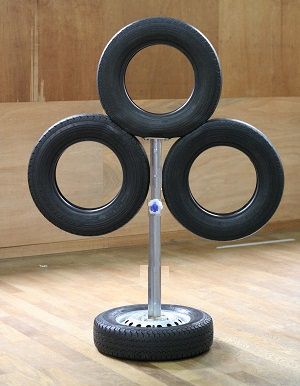 上のタイヤで面打ち、 下のタイヤで小手打ちと胴打ちに丁度よい高さになっています。