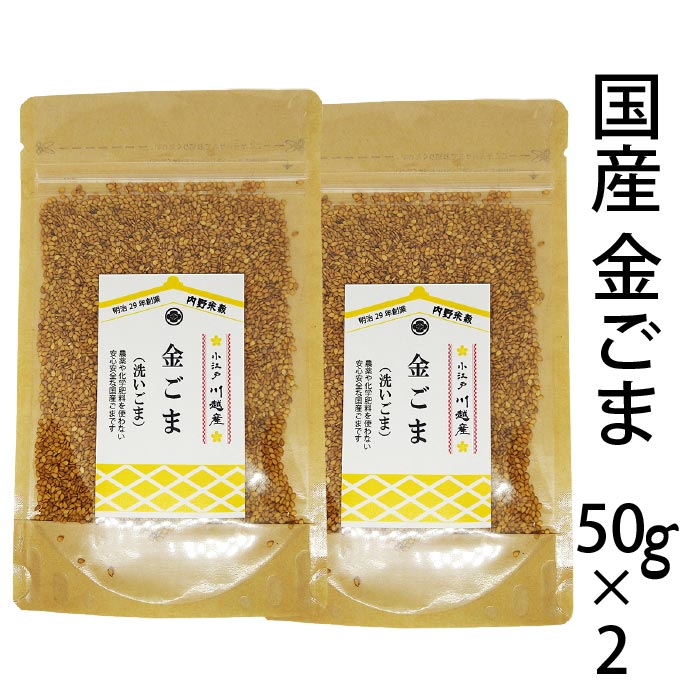 【新物】国産 金ごま (洗いごま) 金胡麻 令和7年産 100g(50gx2) 農薬化学肥料未使用 メール便 代 引・後払い不可