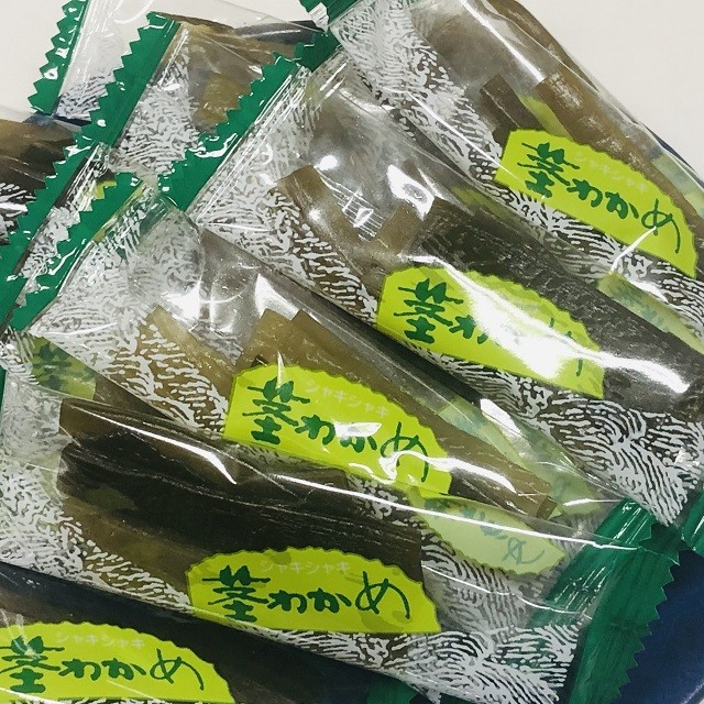 原材料名 湯通し塩蔵わかめ(三陸産)、砂糖、食塩、みりん/酸味料、ソルビトール、調味料(アミノ酸等)、乳酸カルシウム