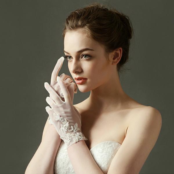 ウエディンググローブ 結婚式 ショート ベール 花嫁 手袋 オーガンジーにレースとパールビジュー刺繍を施した上品なウェディンググローブ