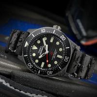 説明:水中での活動に不可欠な機能と耐久性を融合させた<ディープウォーター リーフ200 コンポジット>。200m防水のケースには、高い強度をもちながらもアルミニウムより軽く、強くて腐食しないレジンとカーボンファイバーの複合素材を採用し、反射防止コーティングを施したサファイアガラス風防や、逆回転防止ベゼルが搭載されています。文字盤のユニークな波模様とエンボス加工されたラバーストラップのスタイリッシュなデザインは、マリンレジャーやアウトドアだけでなくタウンユースにも最適です。