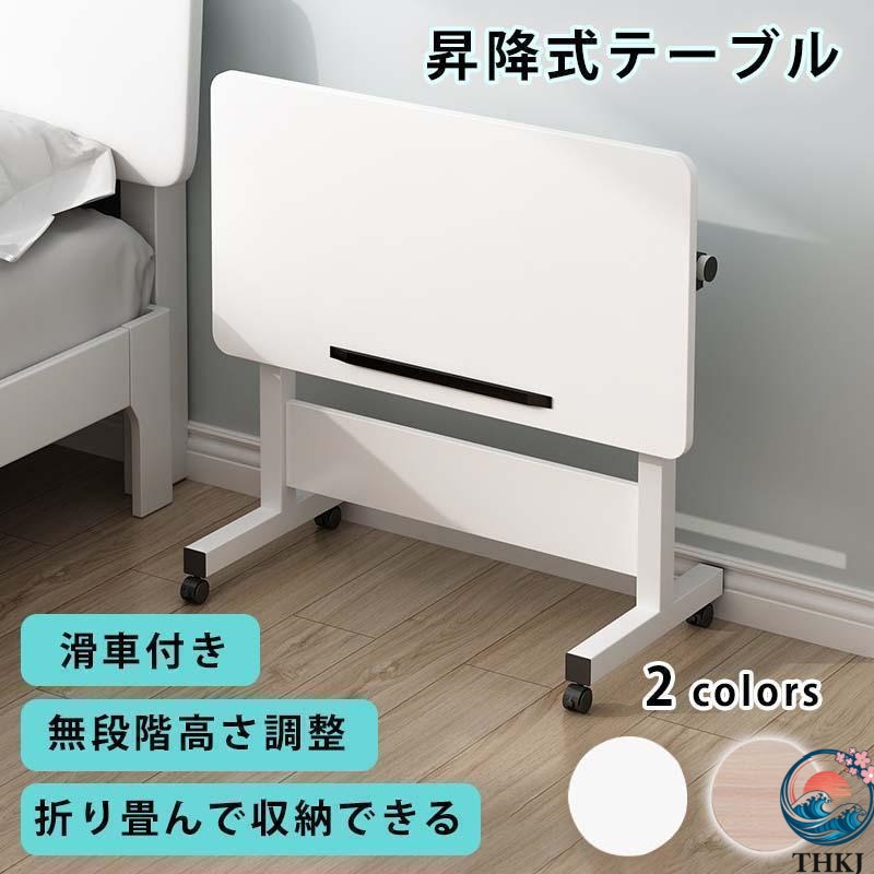 サイドテーブル 昇降式テーブル 無段階 高さ調節 レバー式 60×40 在宅 介護 折りたたみテーブル 組立不要 キャスター付き 一人暮らし 便利 おしゃれ 完成品