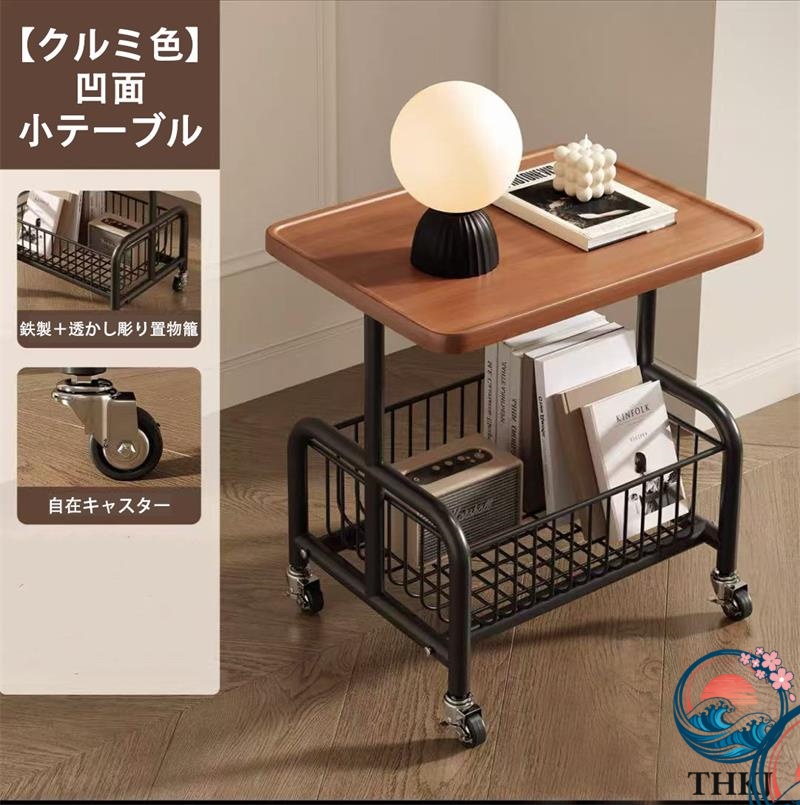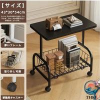 コンパクト 多機能 サイドテーブル ソファーサイド ベッドサイド兼用 可動式キャスター付き 収納棚付き モダンデザイン リビング 寝室両用 省スペース家具
