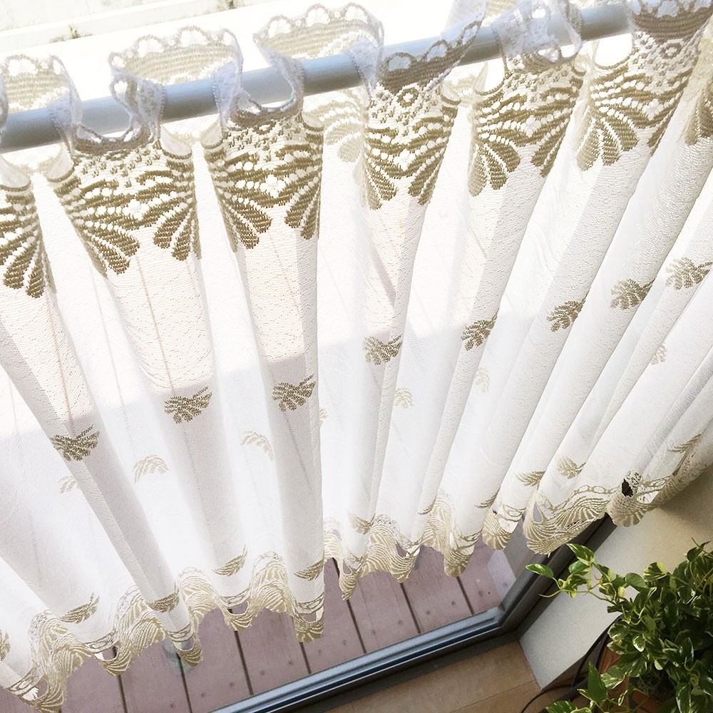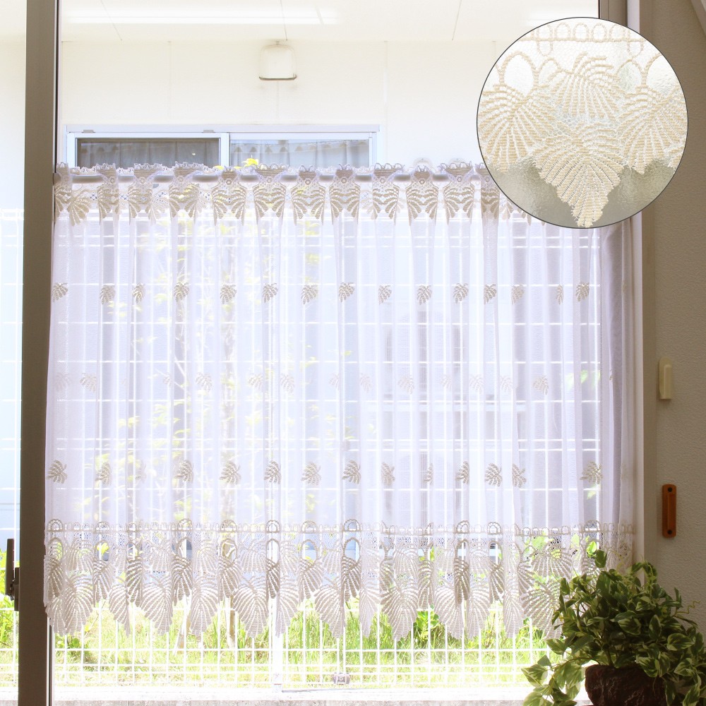 カフェカーテン 幅100〜200cmまで 丈75cm おしゃれ レース 切り売り グレース (11627) ベージュ 幅10cm単位