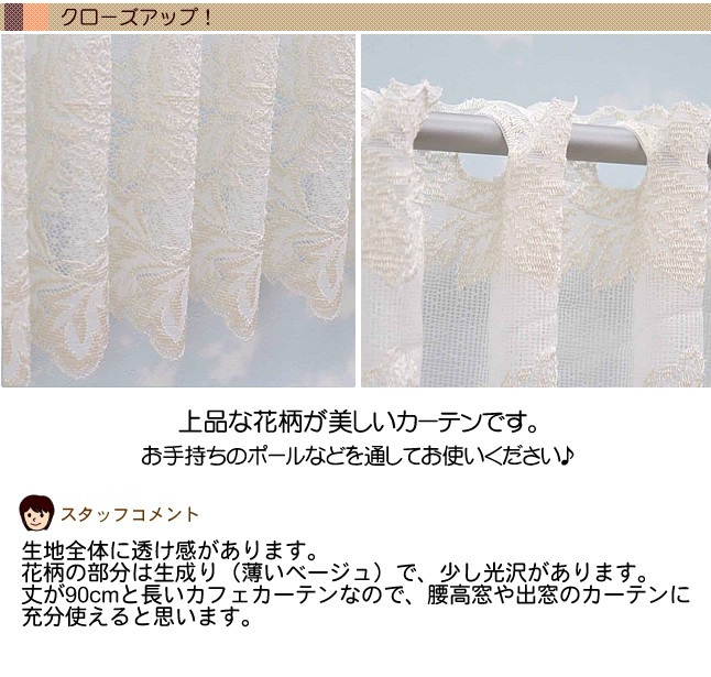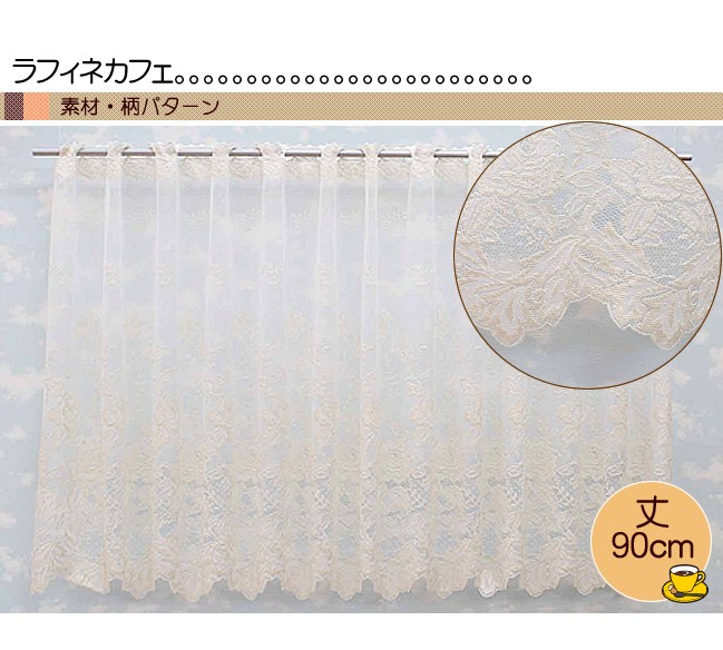 カフェカーテン 幅100〜200cmまで 丈90cm おしゃれ レース ラフィネ 10901 幅10cm単位 切り売り