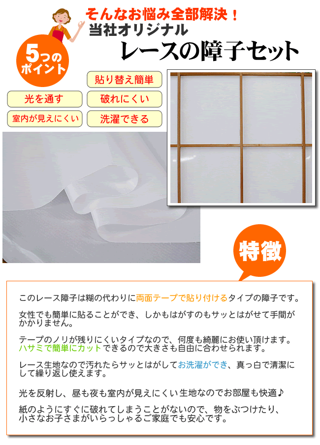 レース障子 昼も夜も見えにくいタイプ 大きめ 約150×220cm 2枚組 障子 張替え 破れない障子 レース生地 障子紙の代わり