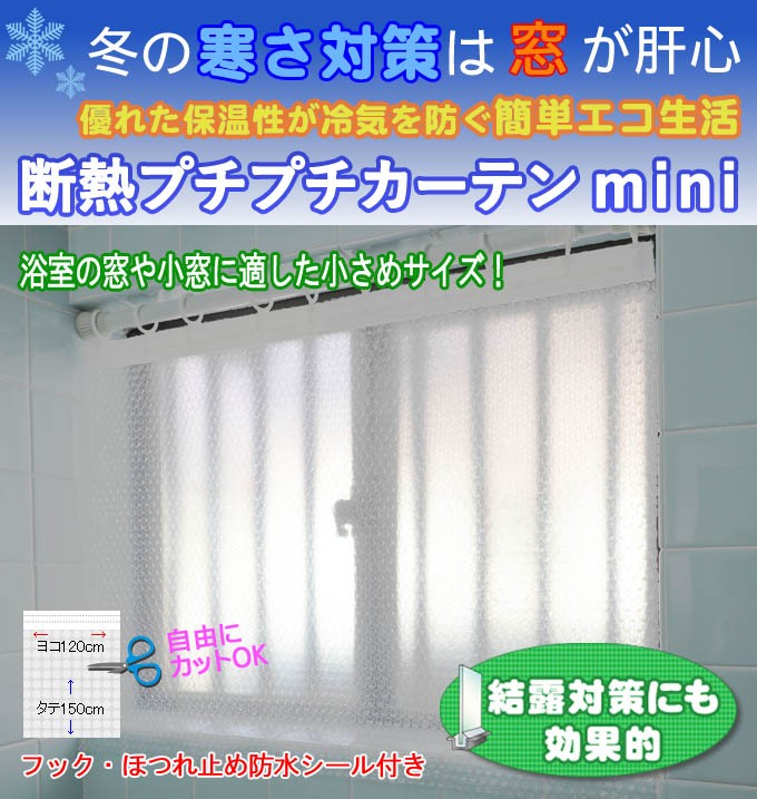 断熱プチプチカーテン ミニ 1枚 幅120cm×高さ〜150まで対応 浴室・小窓の冷気対策 防寒 ビニール 間仕切り 新型コロナ対策にも