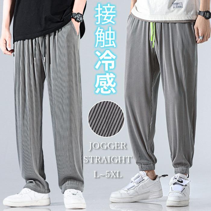ジョガーパンツ ワイドパンツ メンズ 2type 夏 ゆったり アイスシルク 接触冷感 ひんやり 薄手 無地 ドレープ ロング丈 スポーツ 速乾