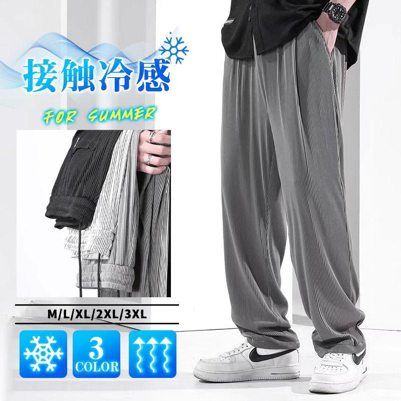 ジョガーパンツ ワイドパンツ メンズ 夏服 ゆったり アイスシルク 接触冷感 ひんやり 薄手 無地 ドレープ ロング丈 涼しい スポーツ 速乾