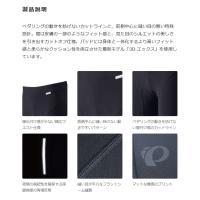 ペダリングの動きを妨げないカットラインと、前側中心に縫い目の無い特殊設計。裾は皮膚の一部のようなフィット感と、見た目のシルエットの美しさを引き出すカットオフ仕様。パッドには身体と一体化するより高いフィット感と柔らかなクッション性を両立させた最新モデル「3D-エックス」を使用しています。