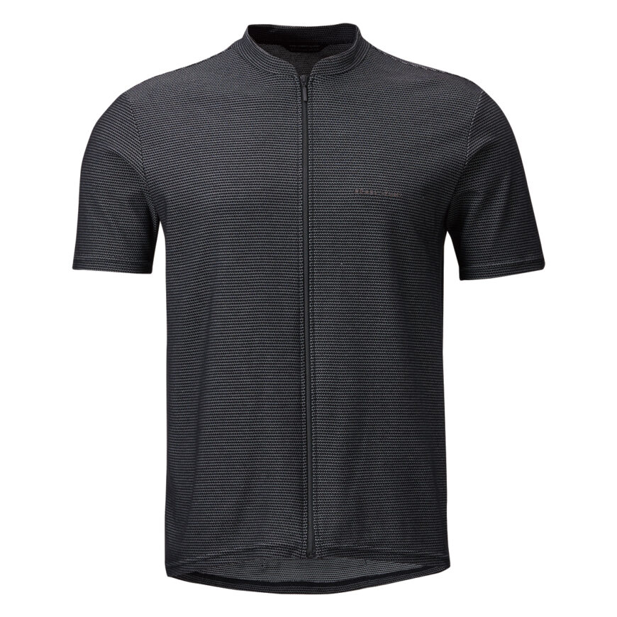 表裏に凹凸のあるコットンのような肌触りでカジュアルテイストの素材を採用し、吸汗性能に優れる「クールマックス」を採用したドライな着心地。身頃裾にゴムが入っていないゆとりのあるシルエットに、メタル調ファスナーなどディテールにもこだわったシンプルで着やすいデザイン。