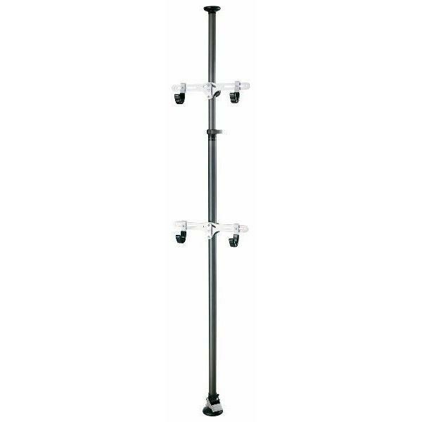 突っ張り棒タイプスタンド。別売のフックを追加すれば裏側にも2台、合計4台かけられます。