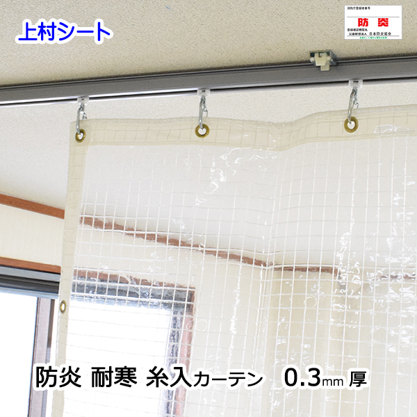 ビニールカーテン 透明 糸入り 0.3mm厚x幅95-195cmx高さ50-100cm