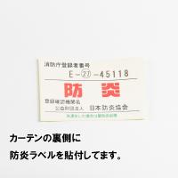 防炎物品ラベル(防炎ラベル)をビニールカーテンに貼付。