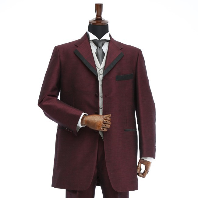 | 【商品名】 | レンタル タキシード | | 【品 番】 | TX_009 | | 【商品内容】 | ジャケット / ベスト / パンツ / ネクタイ / サスペンダー | | 【特 徴】 | ラペルにブラックサテンを配したワインレッドのタキシード。 インナーに素材感の違うシルバーをスタイリング。 華やかさをプラスし、シックになりすぎない、奥深いコーディネートに仕上げました。