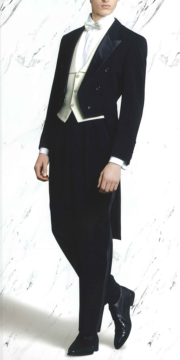 | 【商 品 名】 | レンタル タキシード 10点セット | | 【品 番】 | TX−M−102_10 | | 【商品内容】 | ジャケット / ベスト / パンツ / ウイングカラーシャツ / ポケットチーフ / 白手袋 / アームバンド / 靴下 / ネクタイ / サスペンダー | | 【特 徴】 | 夜会服の最上級礼装であるテールコート、通称“燕尾服”。 世界基準のドレスコードを忠実に守った正当な仕様で仕立てました。 時代を超えて受け継がれる永遠のベストスタンダードです。 スリムで小さいサイズからトールサイズ、キング体型まで幅広くサイズをご用意しています。 ウイングカラーシャツと小物がセットになったお得なレンタルタキシード ※靴が必要な場合は、下記バナーから別途お申し込みください。 | | 【サ イ ズ】 | Y-3 / Y-4 / Y-5 / Y-6 / Y-7 / Y-8 / Y-9 / Y-10 (スリム体型サイズ) A-3 / A-4 / A-5 / A-6 / A-7 / A-8 / A-9 / A-10 (ふつう体型サイズ) AB-3 / AB-4 / AB-5 / AB-6 / AB-7 / AB-8 / AB-9 / AB-10 (がっちり体型サイズ) B-3 / B-4 / B-5 / B-6 / B-7 / B-8 / B-9 / B-10 (ゆったり体型サイズ) O-3 / O-4 / O-5 / O-6 / O-7 / O-8 / O-9 / O-10 (セミワイド体型サイズ) E-3 / E-4 / E-5 / E-6 / E-7 / E-8 / E-9 / E-10 (ワイド体型サイズ) K-3 / K-4 / K-5 / K-6 / K-7 / K-8 (キング体型サイズ)