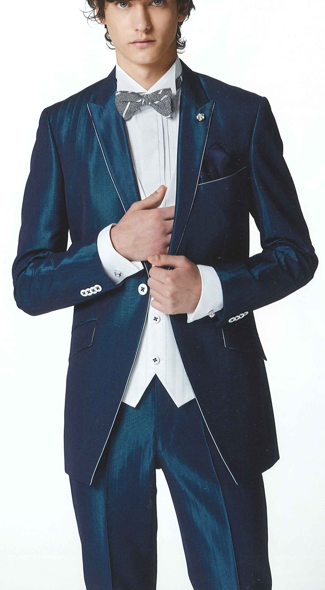 | 【商 品 名】 | レンタル タキシード | | 【品 番】 | TX-M-20329 | | 【商品内容】 | ジャケット / ベスト / パンツ / 蝶ネクタイ / サスペンダー | | 【特 徴】 | 光の当たる角度で様々な表情を見せるカリブグリーンのストライプ生地で夏をイメージしたタキシード。ラベルから裾へとサテンテープでメリハリを効かせてフレッシュな印象に。