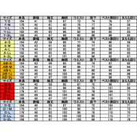| | 【サ イ ズ】 | Y-S / Y-M / Y-L / Y-LL / Y-3L (スリム体型サイズ) A-S / A-M / A-L / A-LL / A-3L (ふつう体型サイズ) AB-S / AB-M / AB-L / AB-LL / AB-3L (がっちり体型サイズ) B-S / B-M / B-L / B-LL / B-3L (ゆったり体型サイズ) O-S / O-M / O-L / O-LL / O-3L (セミワイド体型サイズ)