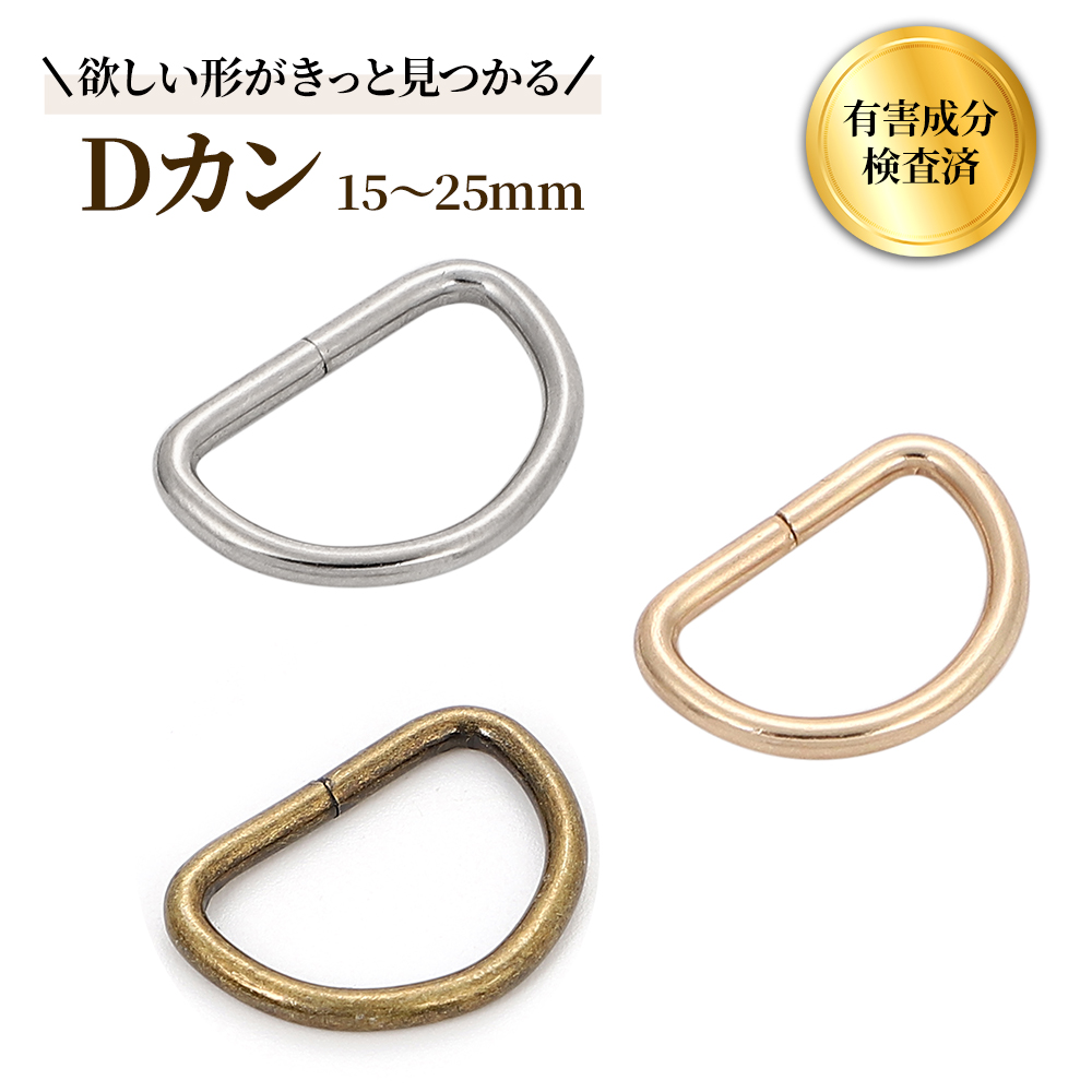 Dカン アンティークゴールド/シルバー/ゴールド 内径15mm/20mm/25mm 鉛・カドミウム検査済み細め 全品国内検品 金具 ハンドメイド 手芸 レザークラフト バッグ