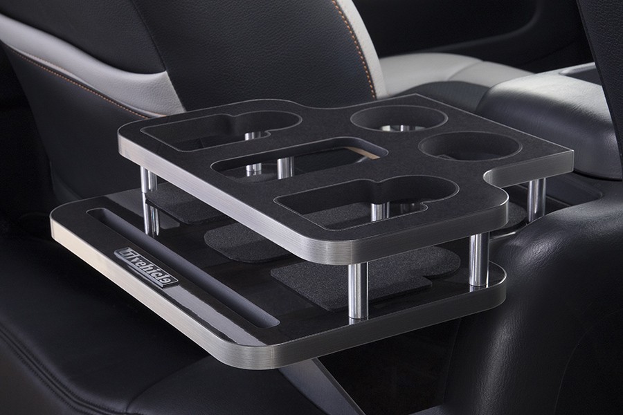 スリム缶やペットボトル(600ml対応)、紙パックが置け、中央部はウェットティッシュやフライドポテトも置けます。