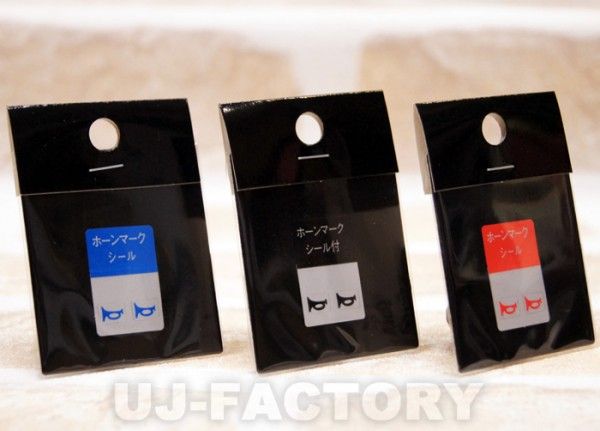 ★ステッカーのカラーは、ブラック/ブルー/レッドの3色を設定。ホーンボタンのカラーに合わせてチョイスしてください。(1シートにラッパマーク2枚)