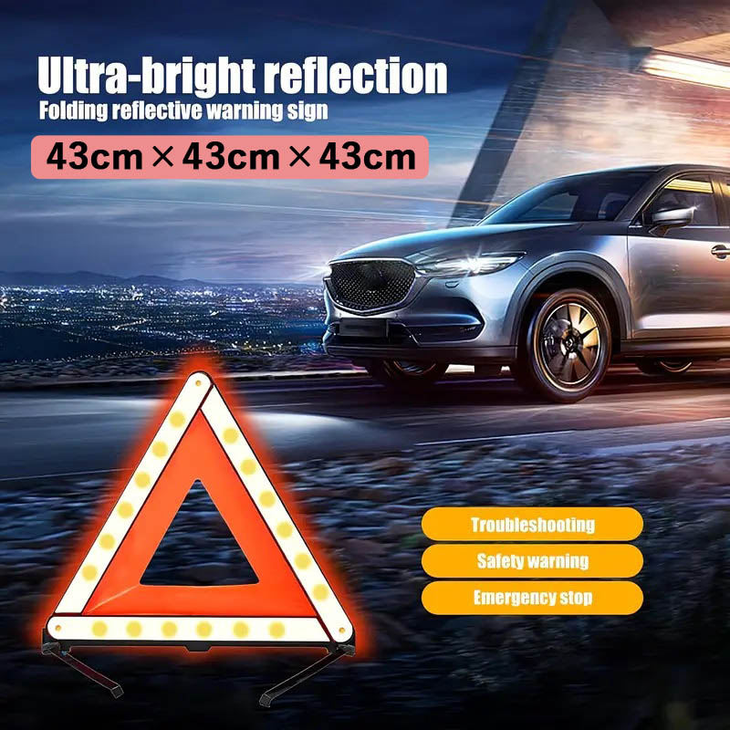 三角表示板 折りたたみ式 43cm 収納ケース付き 三角形反射警告サイン 警告板 追突事故防止 車 バイク 緊急時 昼夜間兼用 二次災害防止