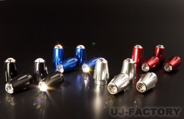 【即納!】★大粒!本物スワロフスキー使用! アルミ・エアバルブキャップ★ 4個セット(1台分) ブラック /シルバー /レッド /ブルー