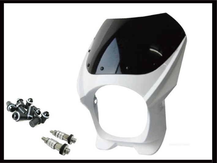 MADMAX 180φ ビキニカウル ホワイト M8取付+スクリーンボルト ブラック付属 M8-DZY2A-W-B マッドマックス ホンダ カワサキ ヤマハ スズキ