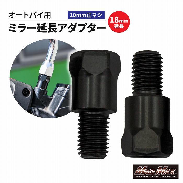MAD MAX オートバイ用 18mm延長 ミラー延長アダプター 10mm 正ネジ 2本セット (MM04-0017-01-2) CBX ホーネット CB250 ジェイド レブル