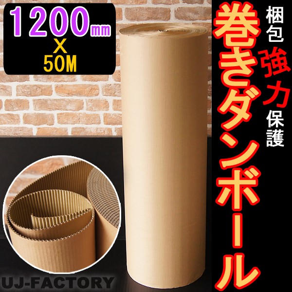 巻ダンボール / 片段ボール(片ダン) 1200mm×50m 表側:クラフト50g × 裏側:クラフトNC110g 超丈夫 巻きダンボール 巻き段 梱包資材 梱包材
