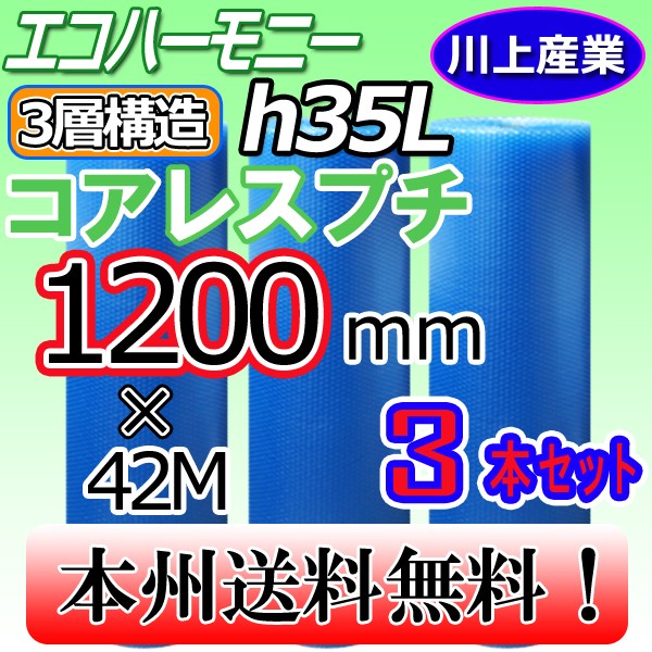 ●川上産業 h35L エコハーモニー/クリア コアレス <幅1200mm × 長さ42m> 3本セット の価格です。メーカー直送品のため、タイミングにより1〜2日(土・日・祝祭日を除く)お時間を頂戴する場合もございますのでご了承下さい。