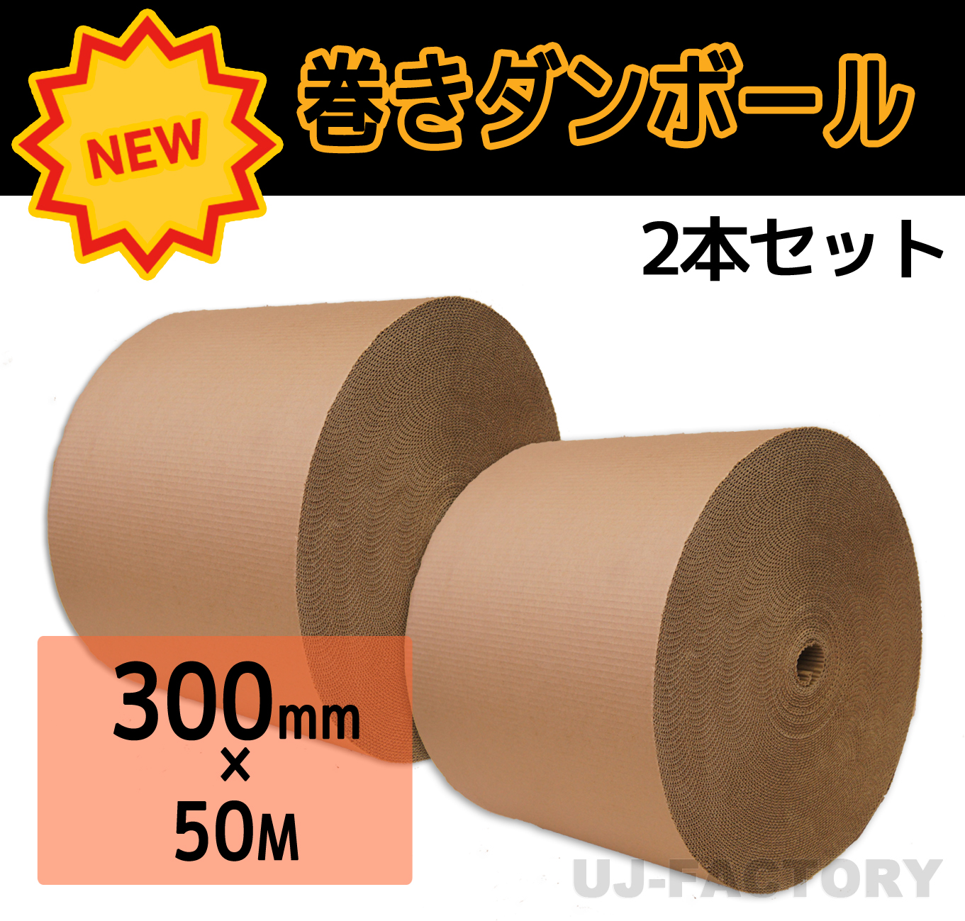 巻きダンボール / 片段ボール(片ダン) 300mm×50m 2本セット クラフトKA 表側:クラフト50g × 裏側:クラフトNC110g 超丈夫 個人宅も可