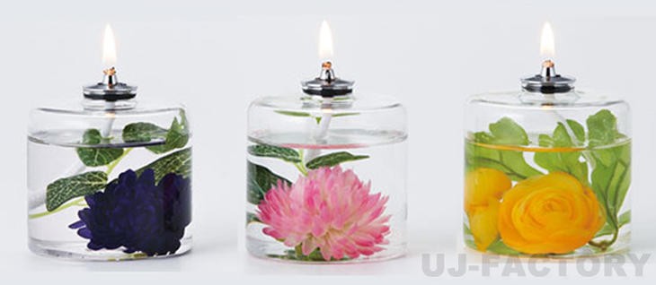 炎の灯りがオイルを透過し、植物をほんのり幻想的に照らします。