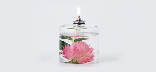 炎の灯りがオイルを透過し、植物をほんのり幻想的に照らします。