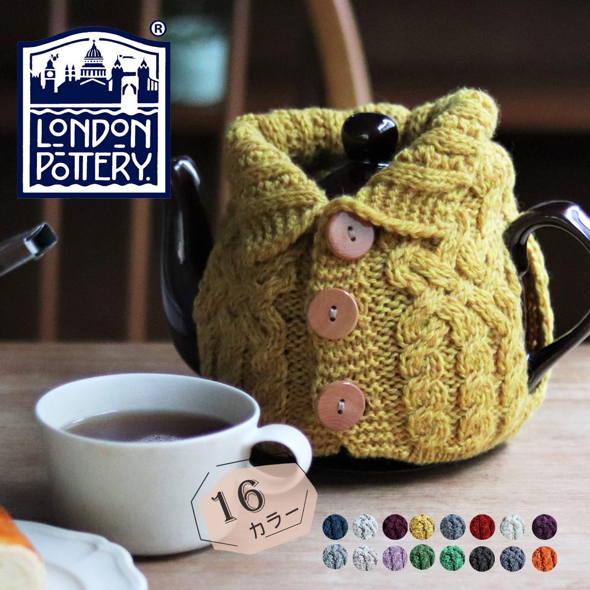 ロンドンポタリー 公式カーディガンティーコージー 2&4カップ兼用 London Pottery メリノウール アラン模様 ケーブル編み かわいい 保温 ティーコゼ 紅茶