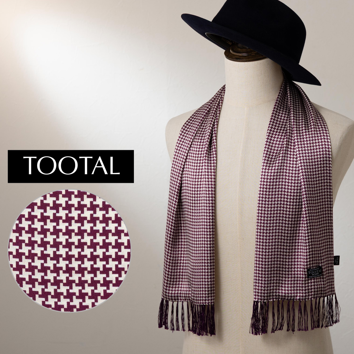 Tootal Vintage ユニセックス ピュア シルク スカーフ ストール バーガンディー 千鳥格子 トゥータル ヴィンテージ UKデザイン フリンジ レディース メンズ