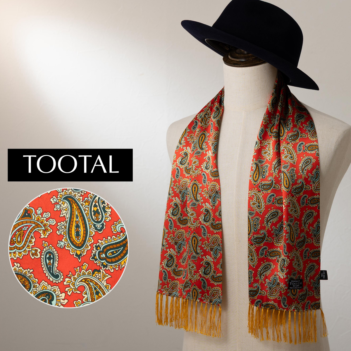 Tootal Vintage ユニセックス ピュア シルク スカーフ ストール スクーター オレンジ レッド ペイズリー トゥータル ヴィンテージ UKデザイン フリンジ