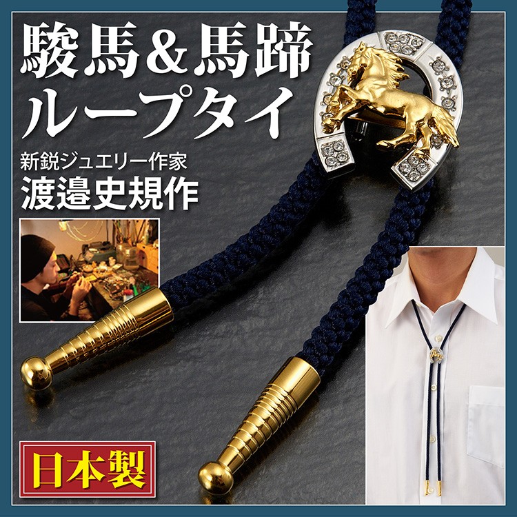 紳士 ループタイ 渡邉史規作 駿馬&馬蹄 スワロフスキー ループタイ 普段の生活 パーティ