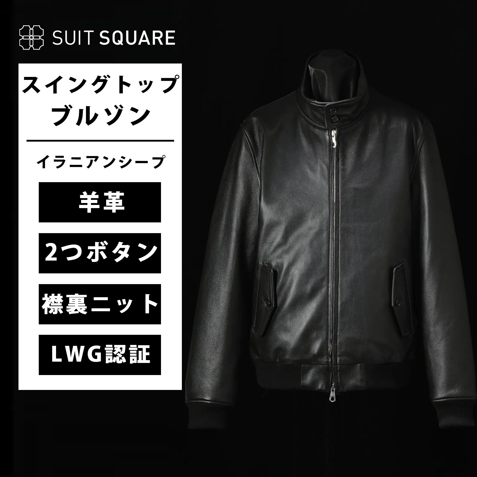 【スーツスクエア】メンズ 秋 冬 スイングトップ ブルゾン アウター ドッグイヤーカラー 2つボタン ダブルジップ 総裏仕立て 腰ポケット×2 内ポケット